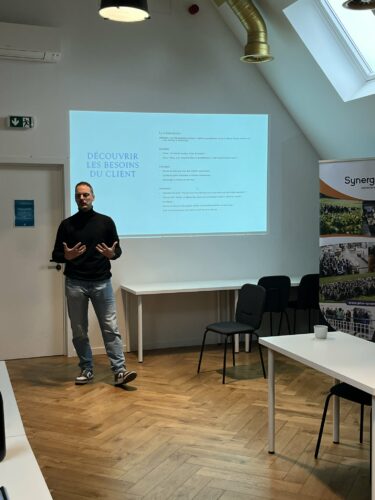 Une matinée Synergie Academy au Cowor-Cœur, animée par Sébastien Dieu, 100 % pratique et concrète pour améliorer ses techniques de vente grâce à des exemples, mises en situation et outils directement applicables au quotidien.